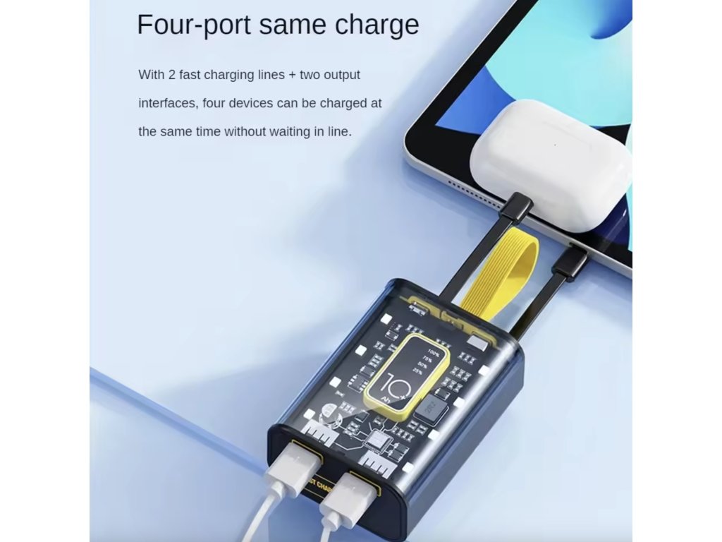 - 4-portové nabíjanie – 2 vstavané káble + 2 USB výstupy